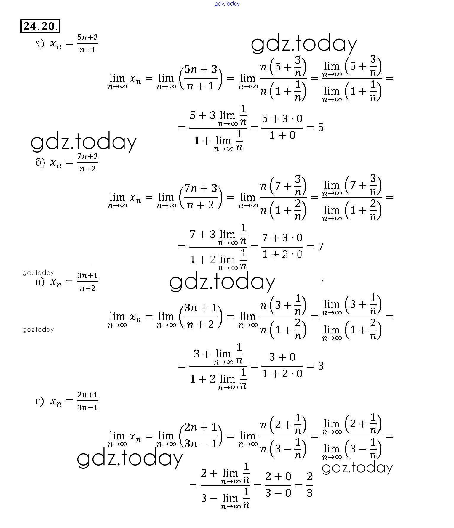 Ответы к §24. Предел последовательности Глава 5 24. 20 Задачнику по Алгебре для 10-11 класса Мордкович, Денищева Базовый уровень Мнемозина 2015
