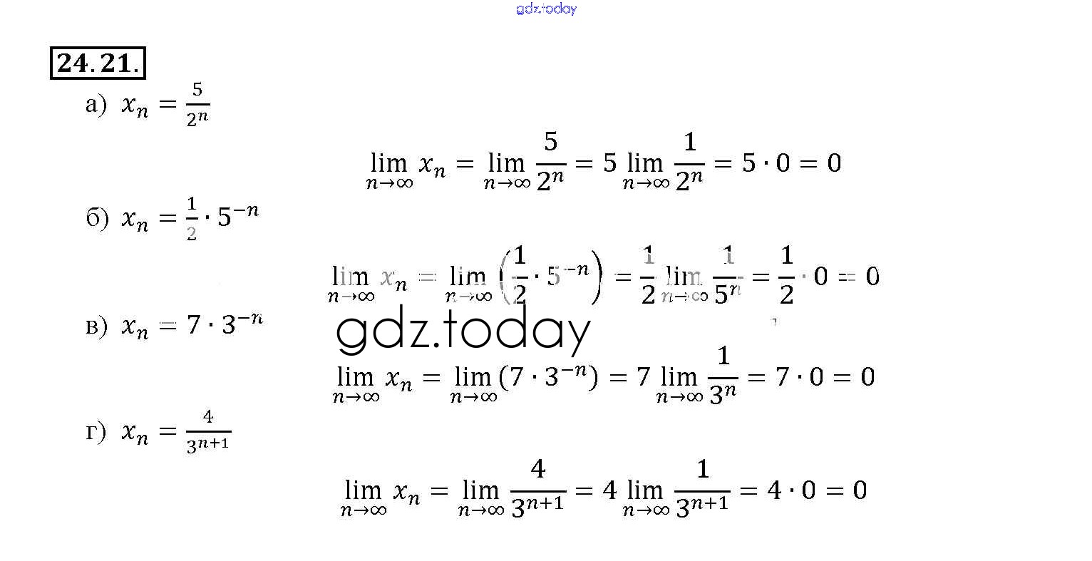 Ответы к §24. Предел последовательности Глава 5 24. 21 Задачнику по Алгебре для 10-11 класса Мордкович, Денищева Базовый уровень Мнемозина 2015