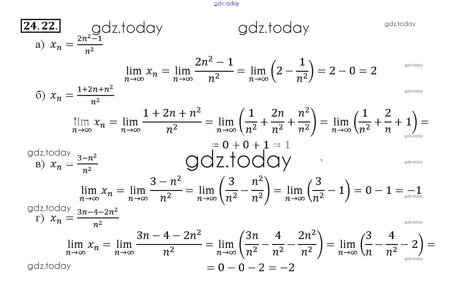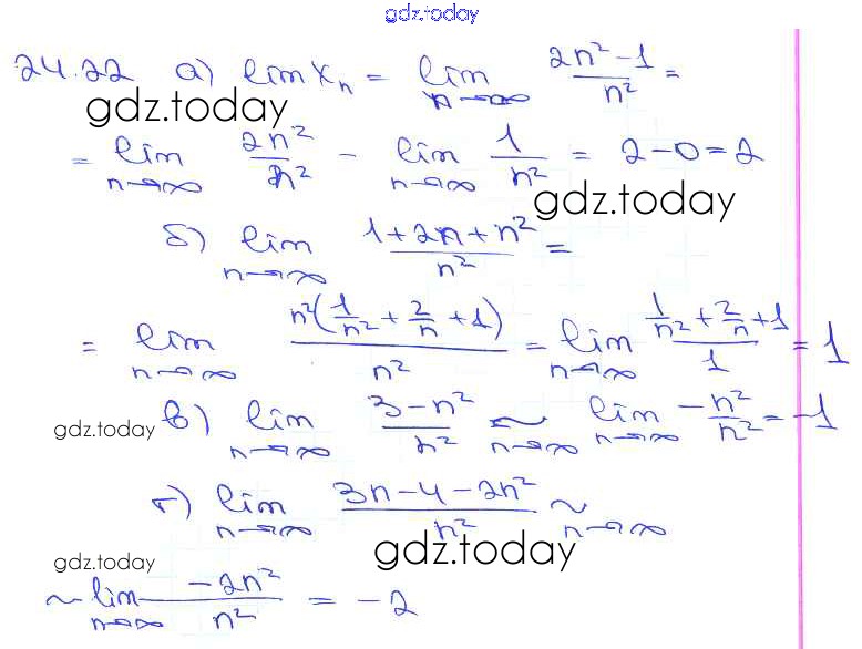 Ответы к §24. Предел последовательности Глава 5 24. 22 Задачнику по Алгебре для 10-11 класса Мордкович, Денищева Базовый уровень Мнемозина 2015