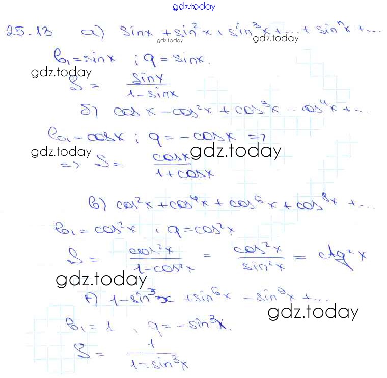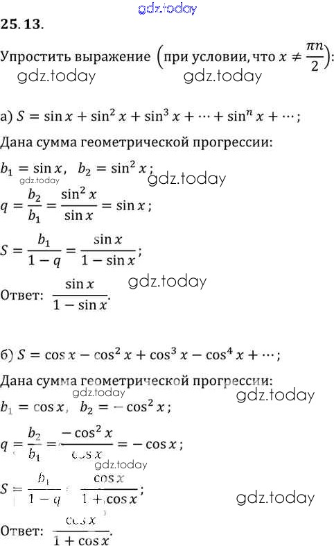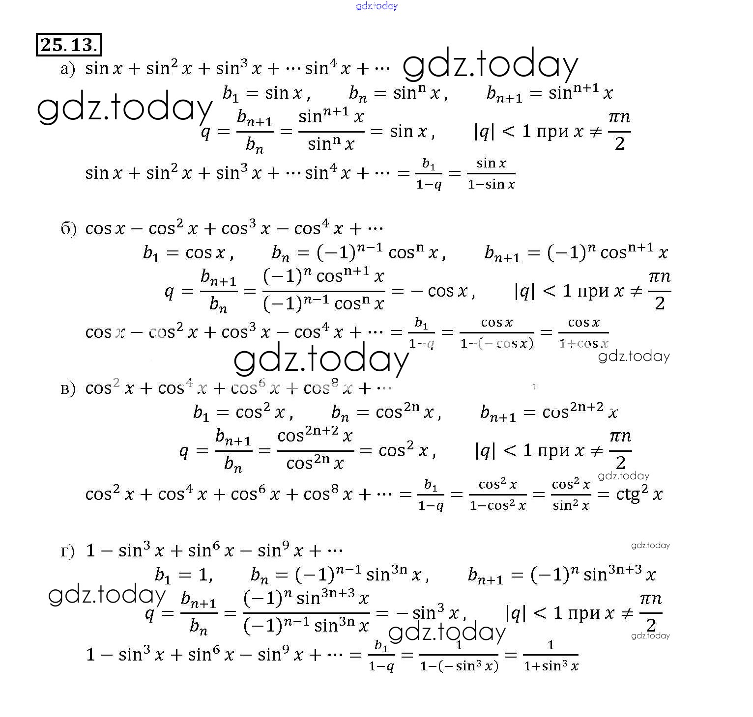 На страницах сайта gdz.today вы найдете учебный и вспомогательный материал, направленный на улучшения знаний школьной программы. ГДЗ - онлайн мир знаний §25. Сумма бесконечной геометрической прогрессии Глава 5 25. 13 Задачнику по Алгебре для 10-11 класса Мордкович, Денищева Базовый уровень Мнемозина 2015