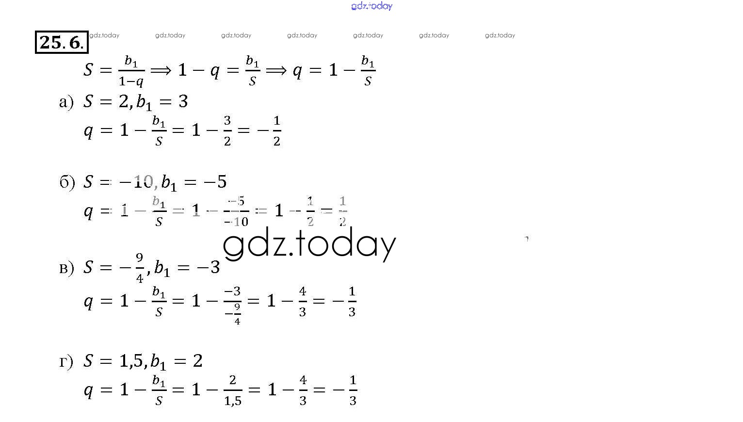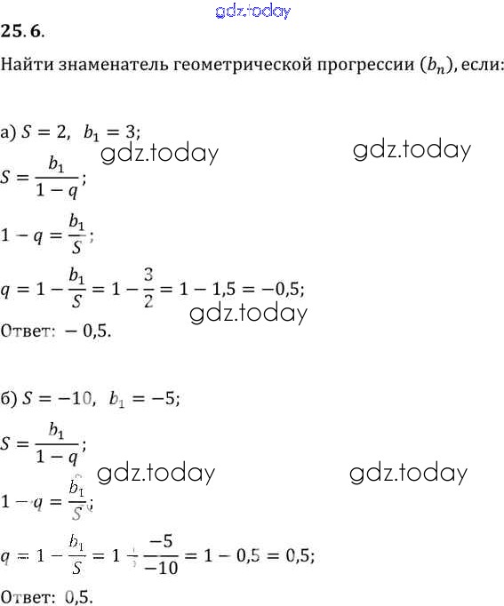 Ответы к §25. Сумма бесконечной геометрической прогрессии Глава 5 25. 6 Задачнику по Алгебре для 10-11 класса Мордкович, Денищева Базовый уровень Мнемозина 2015