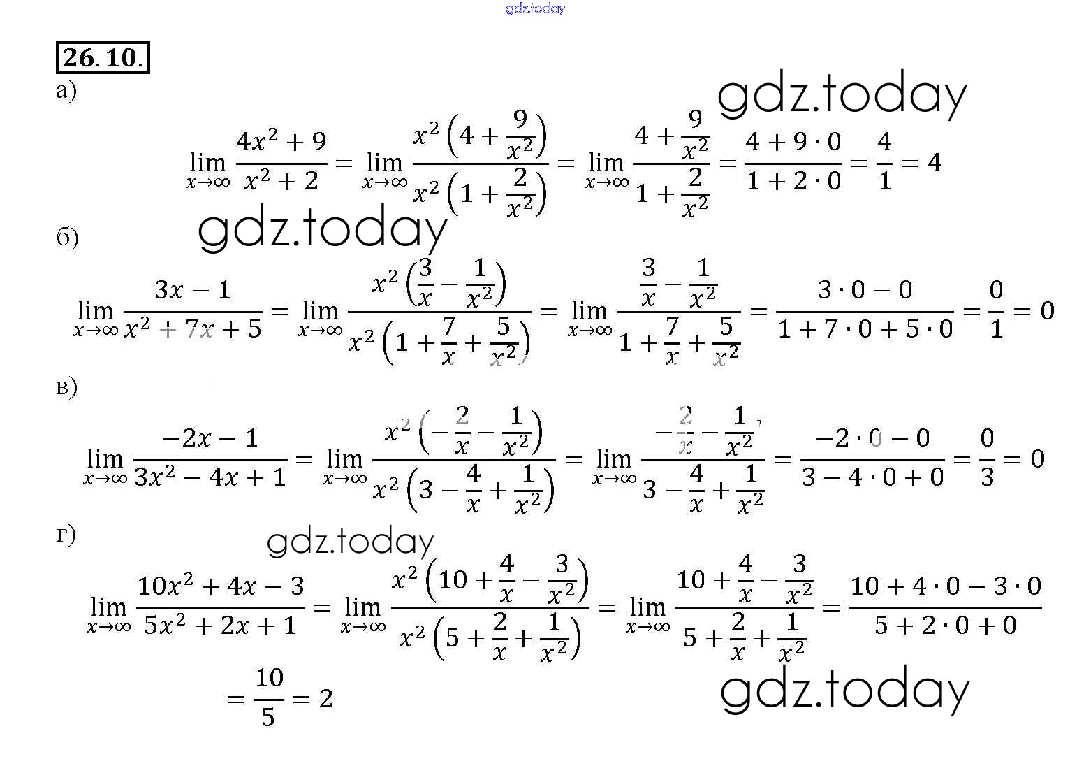Ответы к §26. Предел функции Глава 5 26. 10 Задачнику по Алгебре для 10-11 класса Мордкович, Денищева Базовый уровень Мнемозина 2015