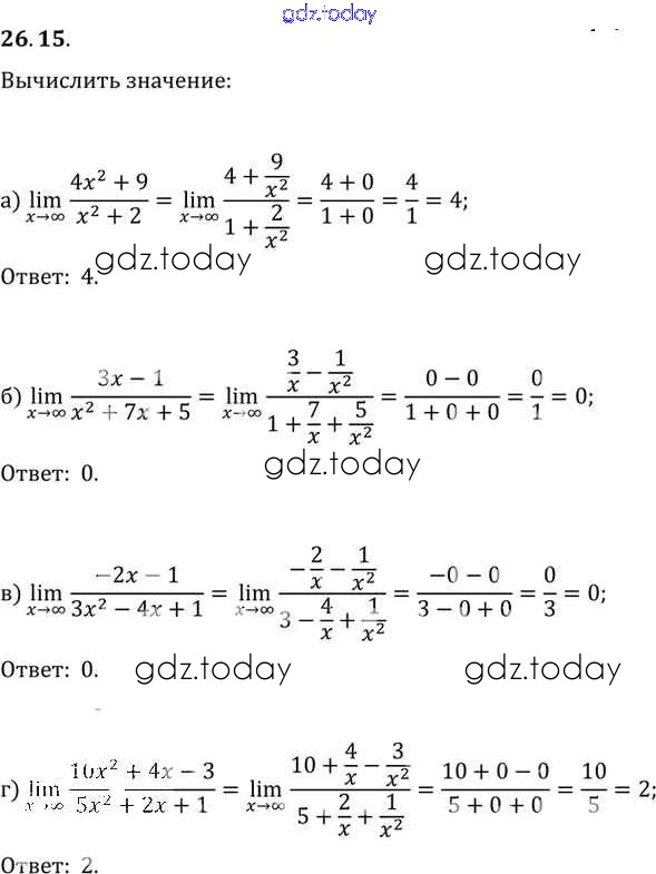 Ответы к §26. Предел функции Глава 5 26. 15 Задачнику по Алгебре для 10-11 класса Мордкович, Денищева Базовый уровень Мнемозина 2015