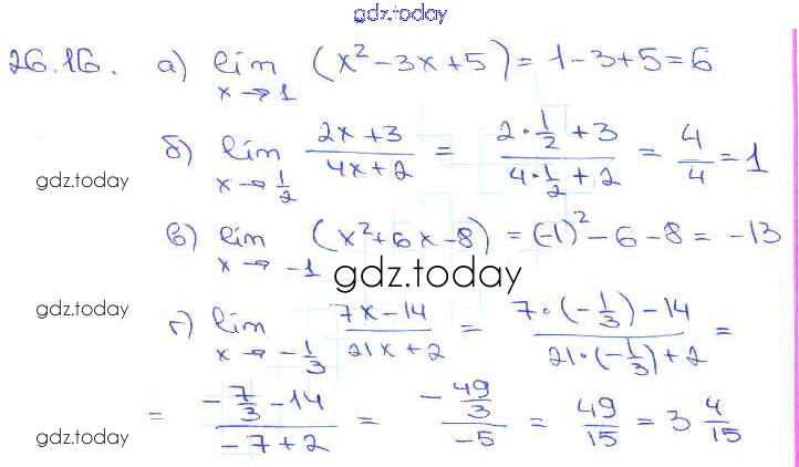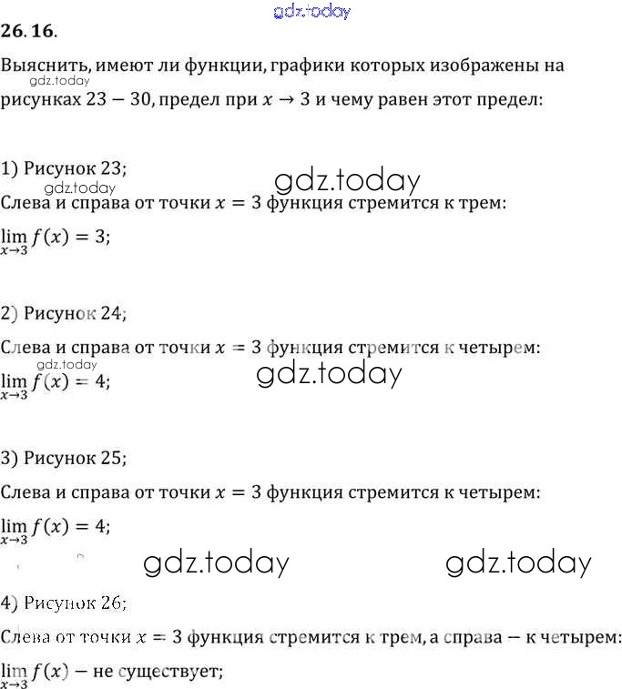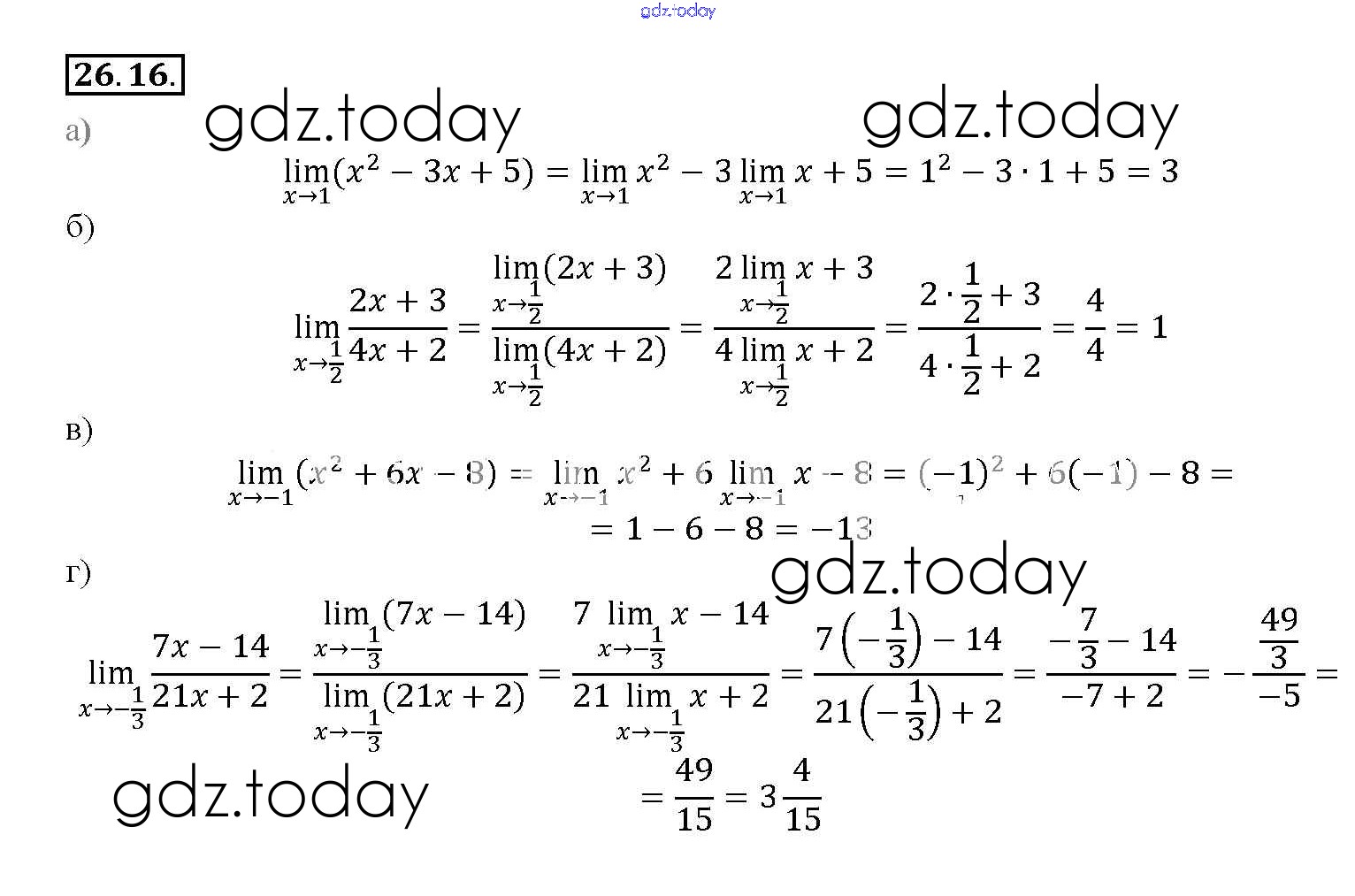 Ответы к §26. Предел функции Глава 5 26. 16 Задачнику по Алгебре для 10-11 класса Мордкович, Денищева Базовый уровень Мнемозина 2015