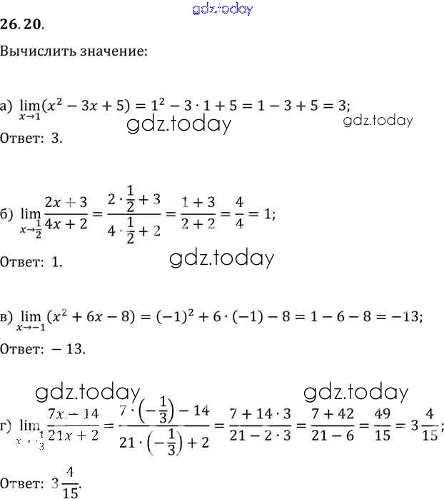 Ответы к §26. Предел функции Глава 5 26. 20 Задачнику по Алгебре для 10-11 класса Мордкович, Денищева Базовый уровень Мнемозина 2015