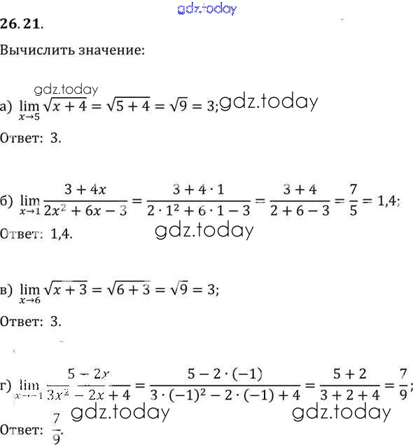 Ответы к §26. Предел функции Глава 5 26. 21 Задачнику по Алгебре для 10-11 класса Мордкович, Денищева Базовый уровень Мнемозина 2015