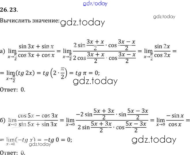 Ответы к §26. Предел функции Глава 5 26. 23 Задачнику по Алгебре для 10-11 класса Мордкович, Денищева Базовый уровень Мнемозина 2015