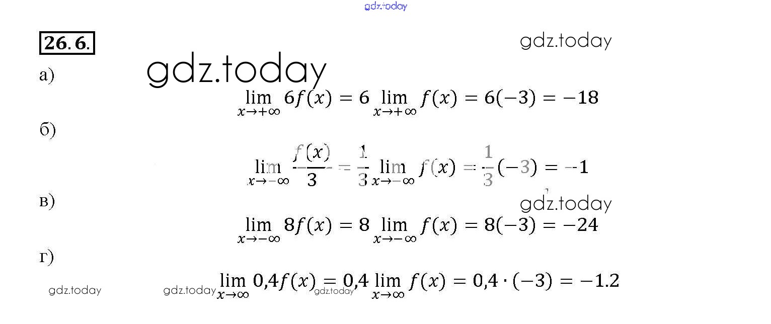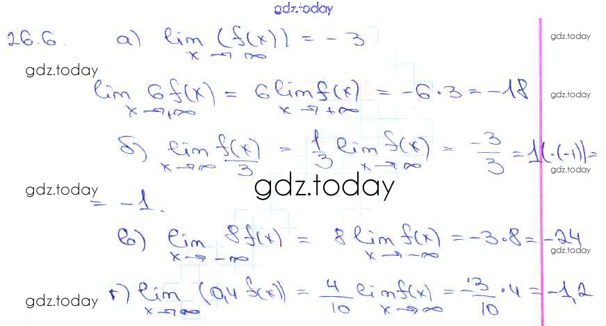 Ответы к §26. Предел функции Глава 5 26. 6 Задачнику по Алгебре для 10-11 класса Мордкович, Денищева Базовый уровень Мнемозина 2015