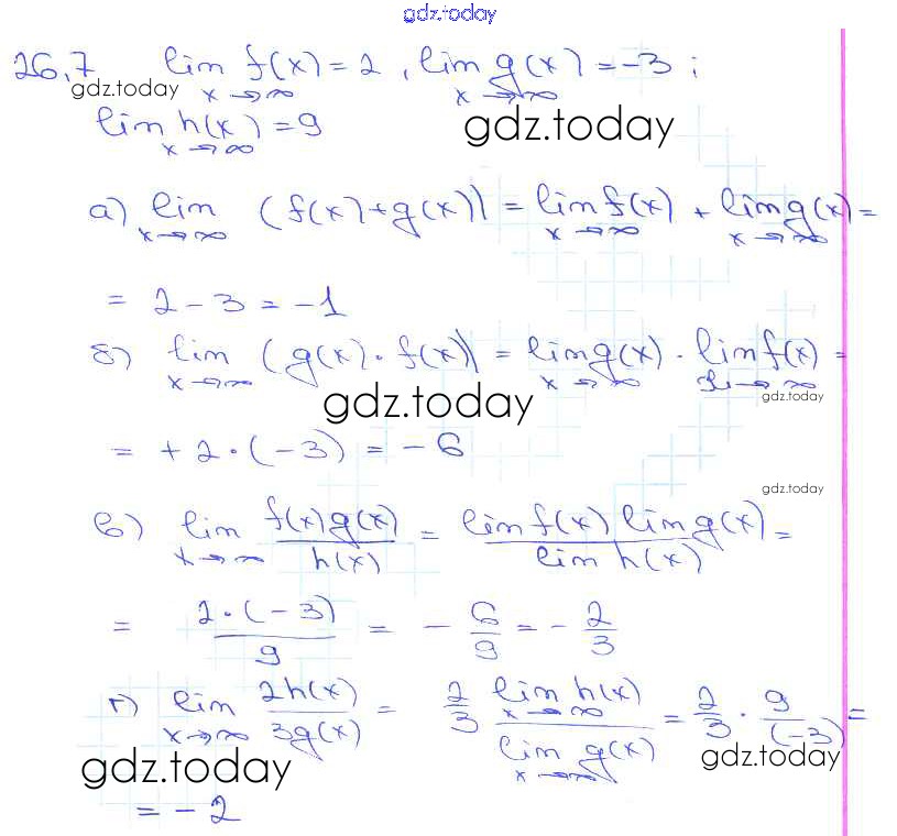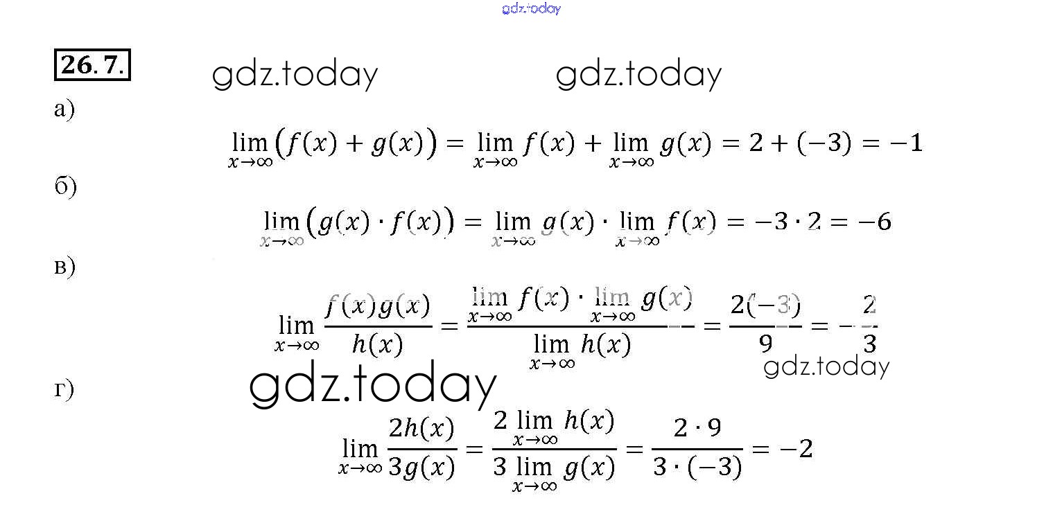 Ответы к §26. Предел функции Глава 5 26. 7 Задачнику по Алгебре для 10-11 класса Мордкович, Денищева Базовый уровень Мнемозина 2015