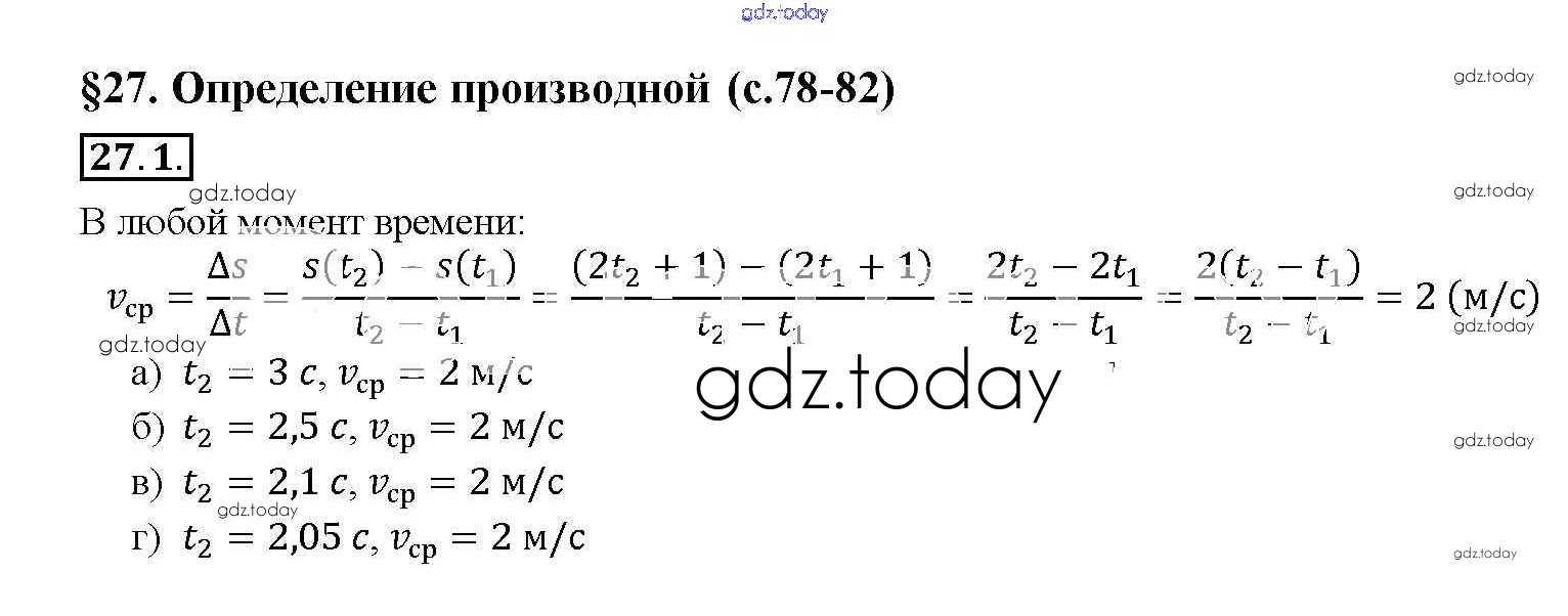 На страницах сайта gdz.today вы найдете учебный и вспомогательный материал, направленный на улучшения знаний школьной программы. ГДЗ - онлайн мир знаний §27. Определение производной Глава 5 27. 1 Задачнику по Алгебре для 10-11 класса Мордкович, Денищева Базовый уровень Мнемозина 2015