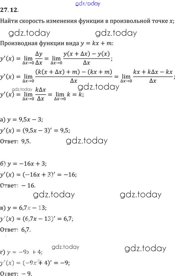 Ответы к §27. Определение производной Глава 5 27. 12 Задачнику по Алгебре для 10-11 класса Мордкович, Денищева Базовый уровень Мнемозина 2015