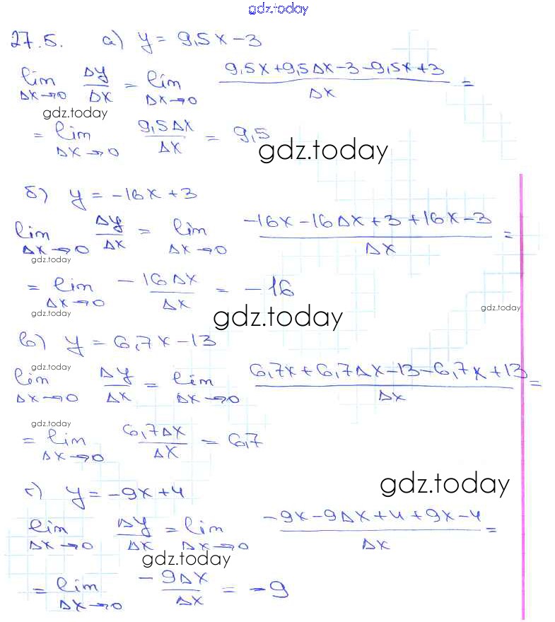 Ответы к §27. Определение производной Глава 5 27. 5 Задачнику по Алгебре для 10-11 класса Мордкович, Денищева Базовый уровень Мнемозина 2015