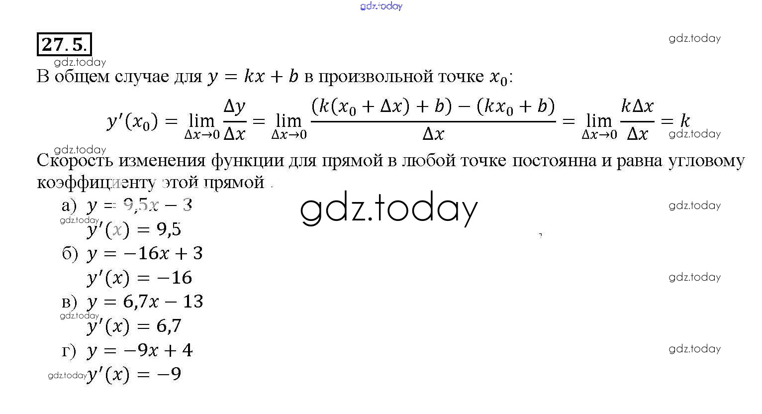 На страницах сайта gdz.today вы найдете учебный и вспомогательный материал, направленный на улучшения знаний школьной программы. ГДЗ - онлайн мир знаний §27. Определение производной Глава 5 27. 5 Задачнику по Алгебре для 10-11 класса Мордкович, Денищева Базовый уровень Мнемозина 2015
