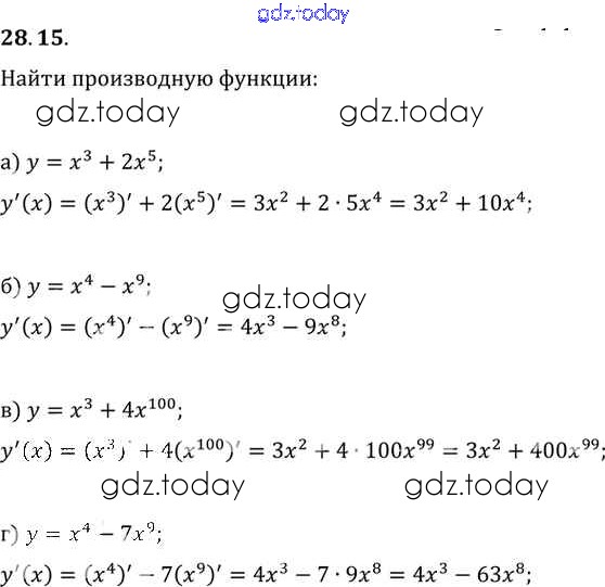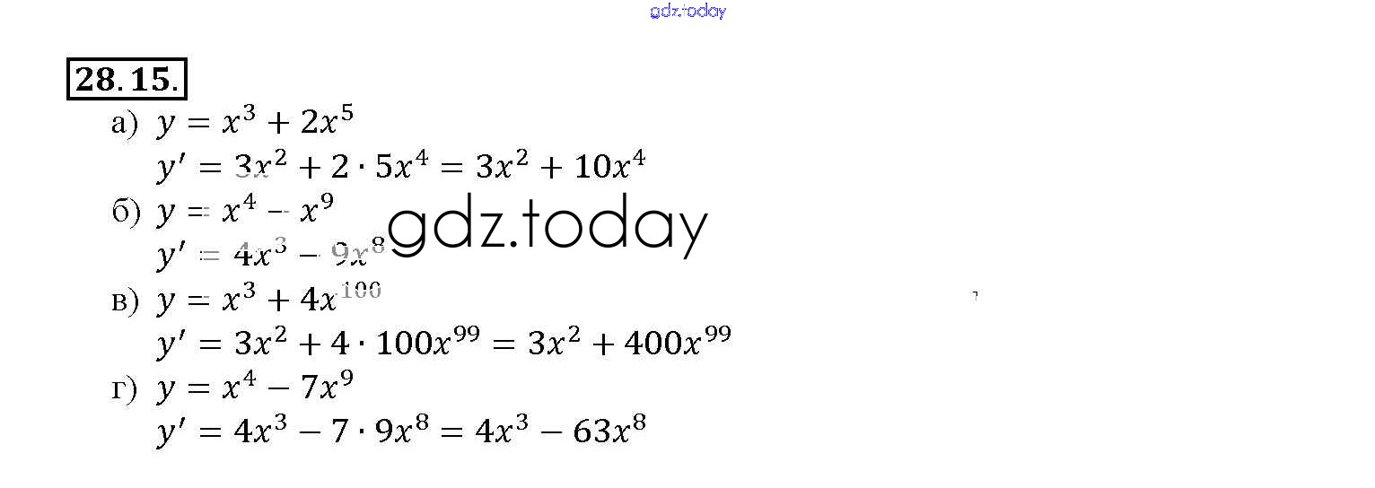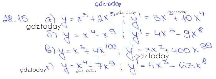 Ответы к §28. Вычисление производных Глава 5 28. 15 Задачнику по Алгебре для 10-11 класса Мордкович, Денищева Базовый уровень Мнемозина 2015