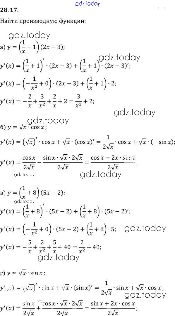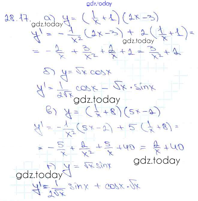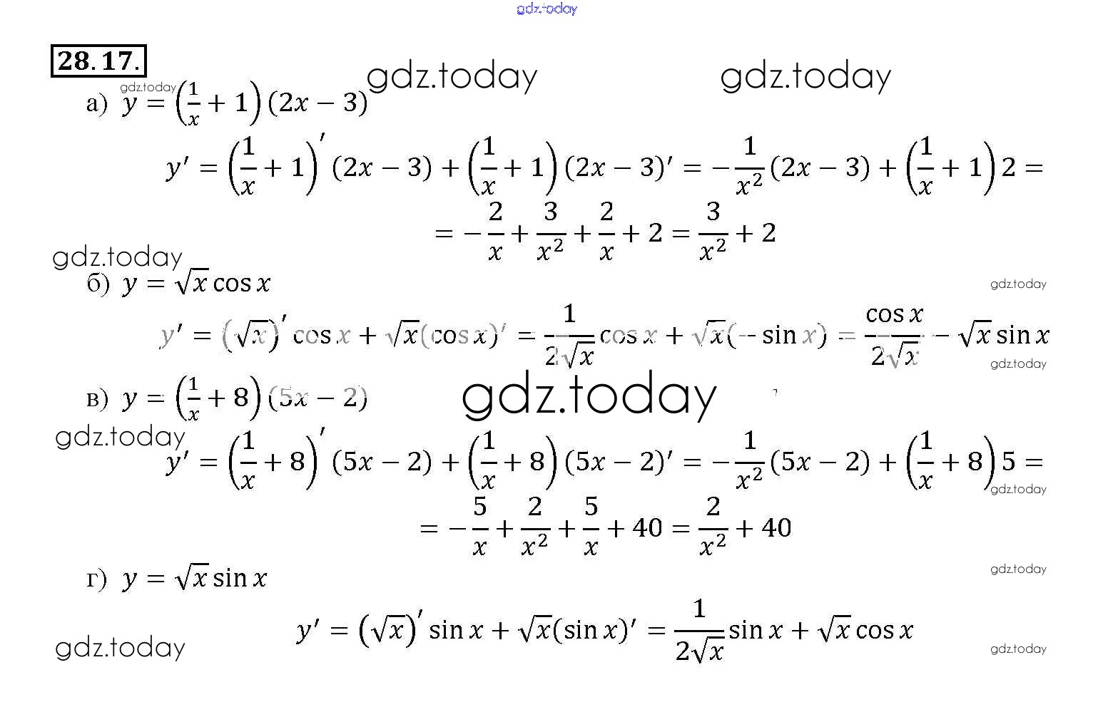 Ответы к §28. Вычисление производных Глава 5 28. 17 Задачнику по Алгебре для 10-11 класса Мордкович, Денищева Базовый уровень Мнемозина 2015