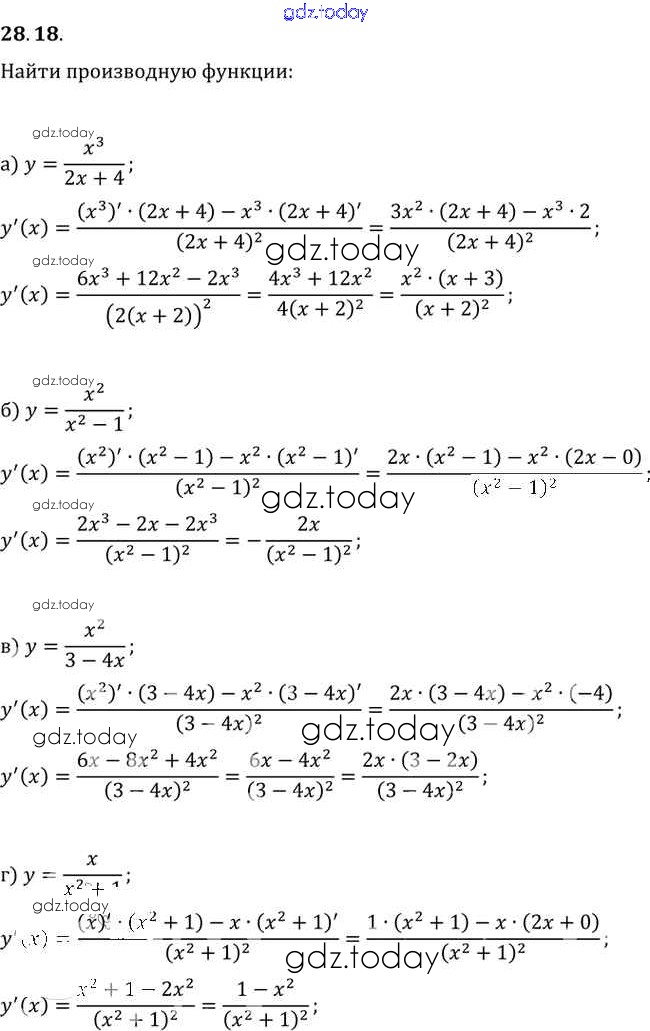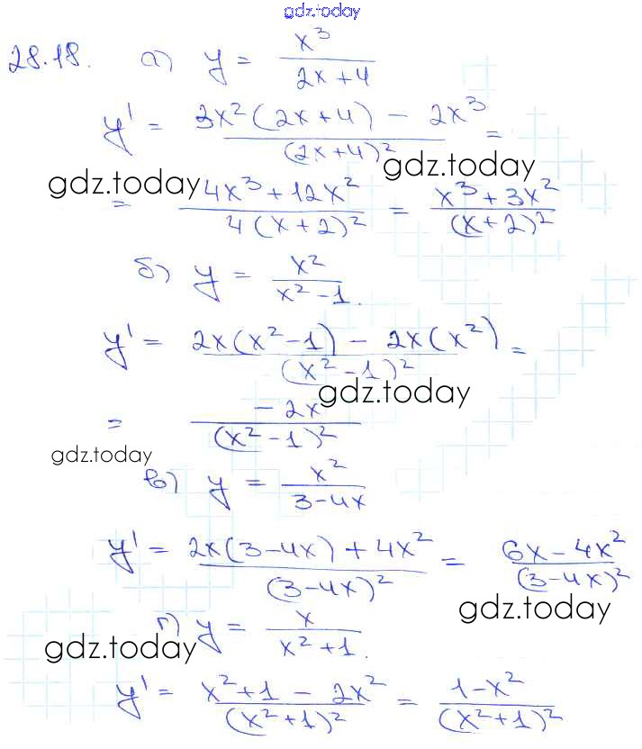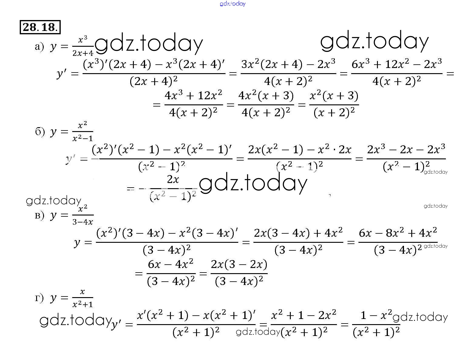 Ответы к §28. Вычисление производных Глава 5 28. 18 Задачнику по Алгебре для 10-11 класса Мордкович, Денищева Базовый уровень Мнемозина 2015