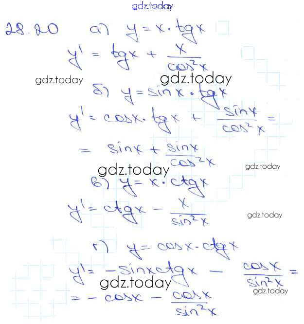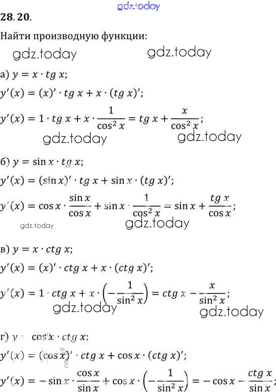 Ответы к §28. Вычисление производных Глава 5 28. 20 Задачнику по Алгебре для 10-11 класса Мордкович, Денищева Базовый уровень Мнемозина 2015
