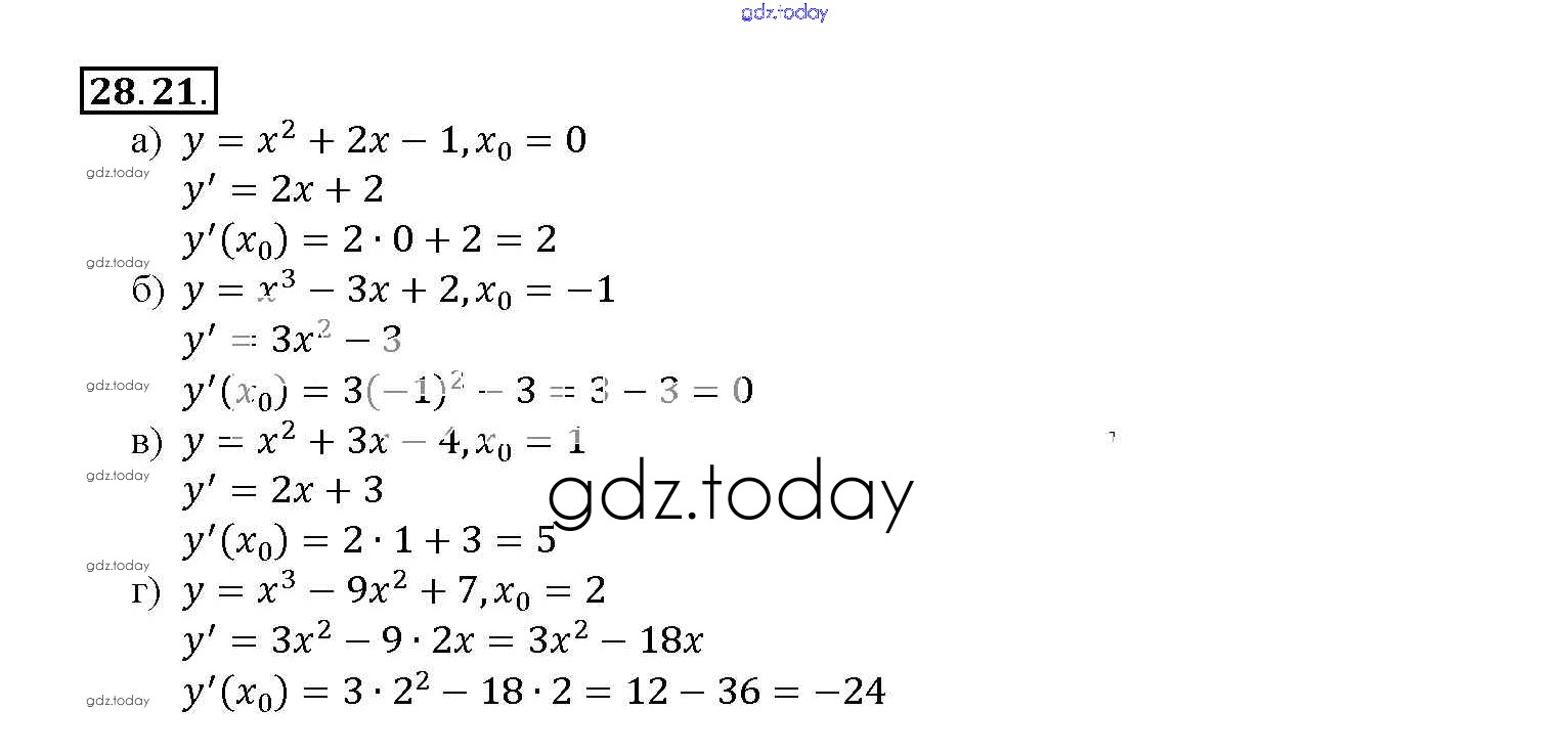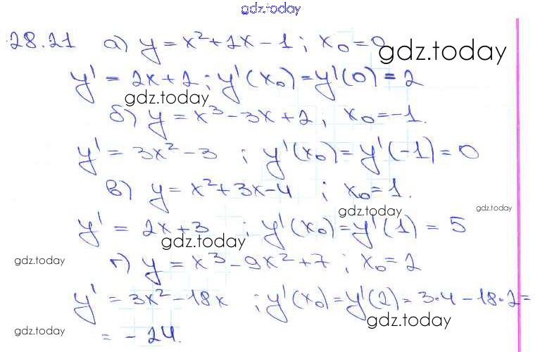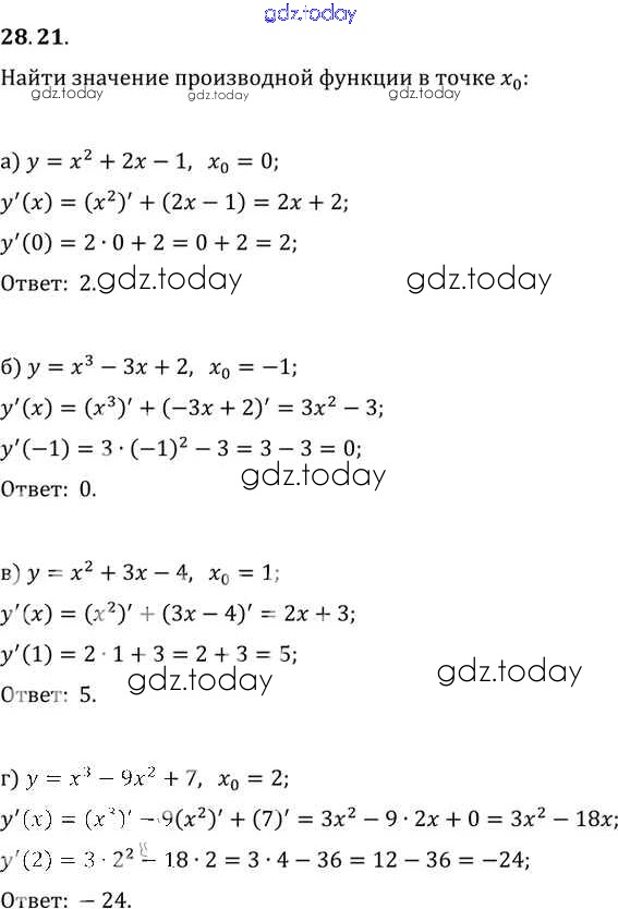 Ответы к §28. Вычисление производных Глава 5 28. 21 Задачнику по Алгебре для 10-11 класса Мордкович, Денищева Базовый уровень Мнемозина 2015