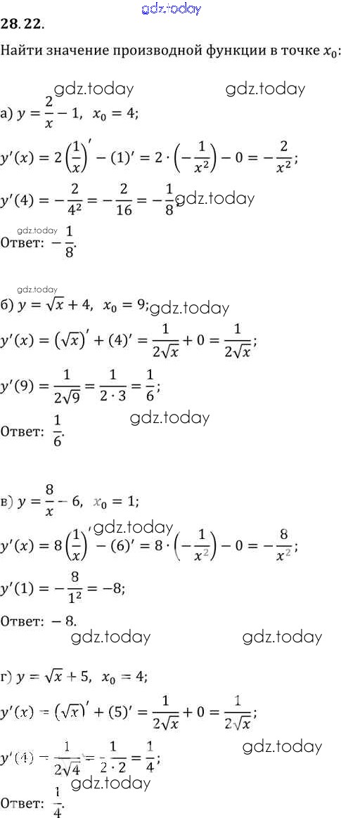 Ответы к §28. Вычисление производных Глава 5 28. 22 Задачнику по Алгебре для 10-11 класса Мордкович, Денищева Базовый уровень Мнемозина 2015