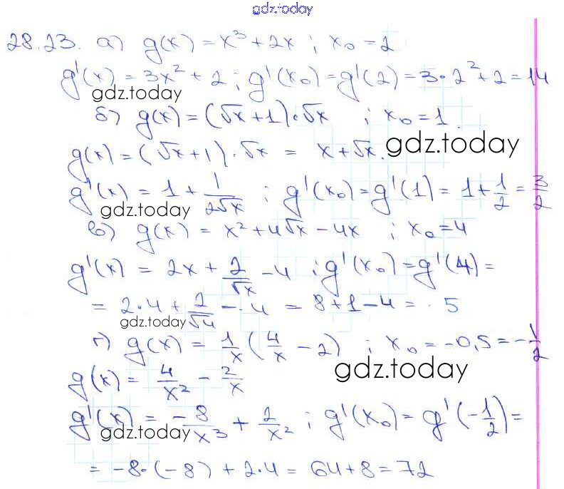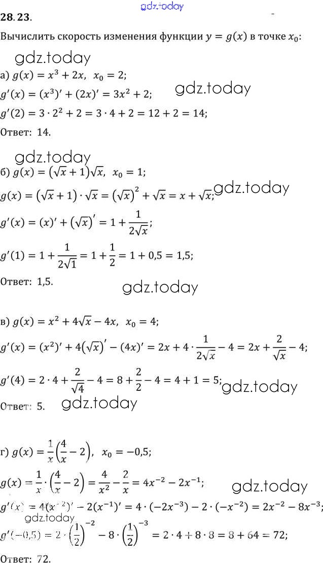 Ответы к §28. Вычисление производных Глава 5 28. 23 Задачнику по Алгебре для 10-11 класса Мордкович, Денищева Базовый уровень Мнемозина 2015