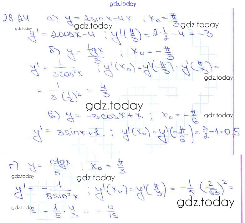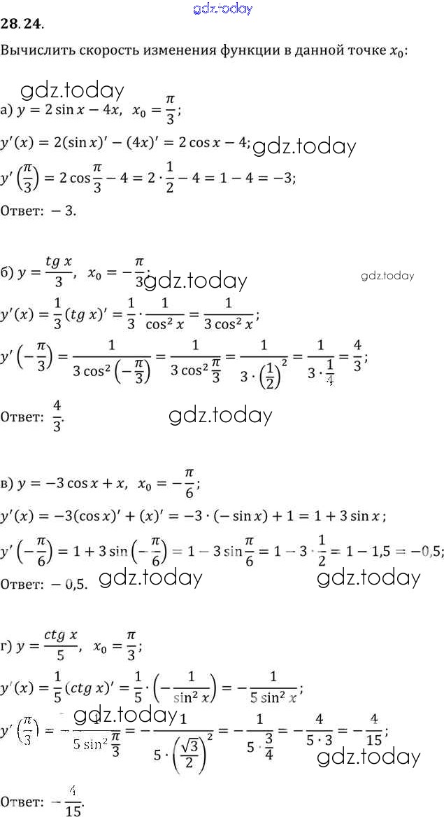 Ответы к §28. Вычисление производных Глава 5 28. 24 Задачнику по Алгебре для 10-11 класса Мордкович, Денищева Базовый уровень Мнемозина 2015