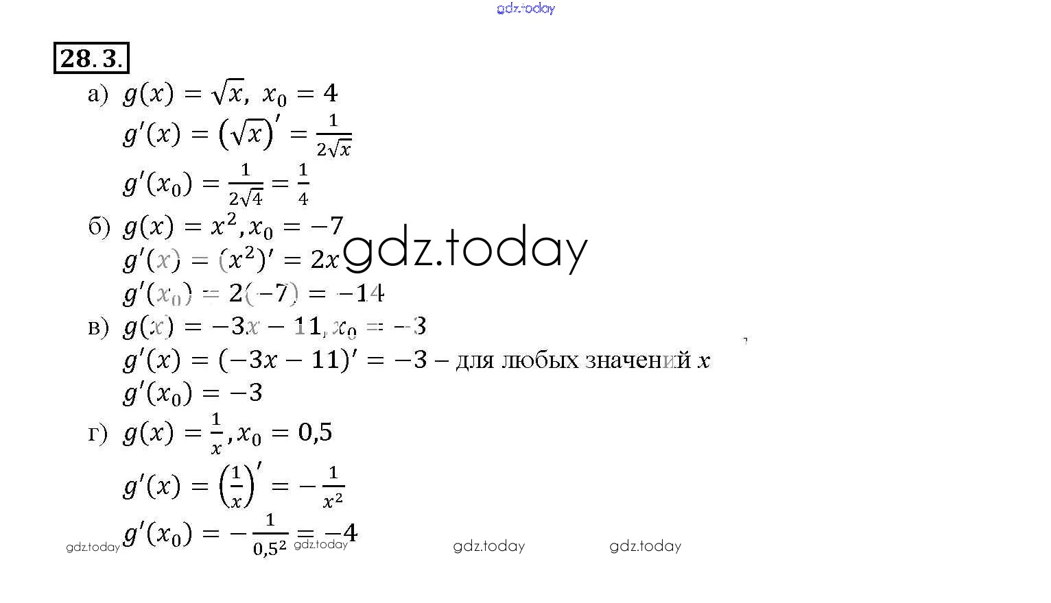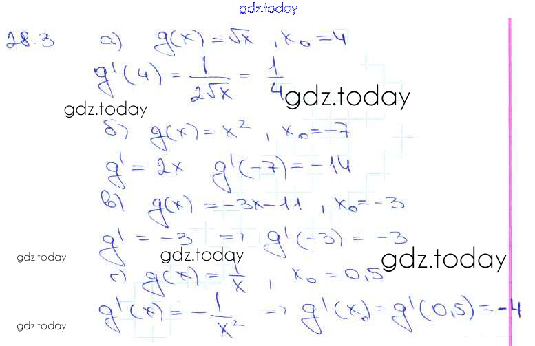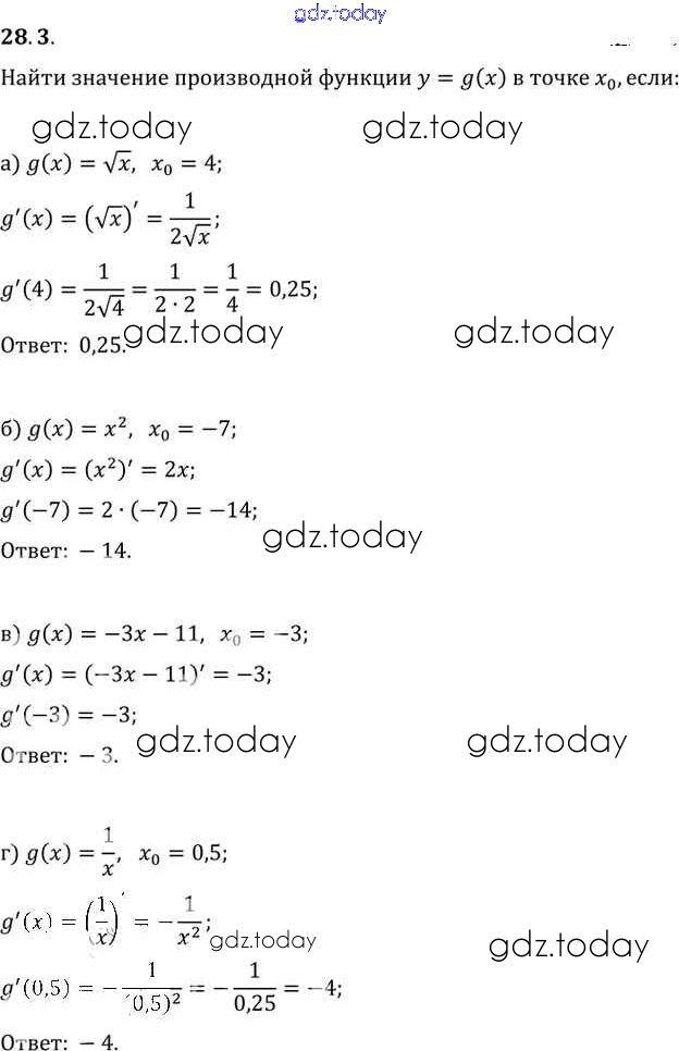Ответы к §28. Вычисление производных Глава 5 28. 3 Задачнику по Алгебре для 10-11 класса Мордкович, Денищева Базовый уровень Мнемозина 2015