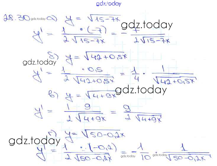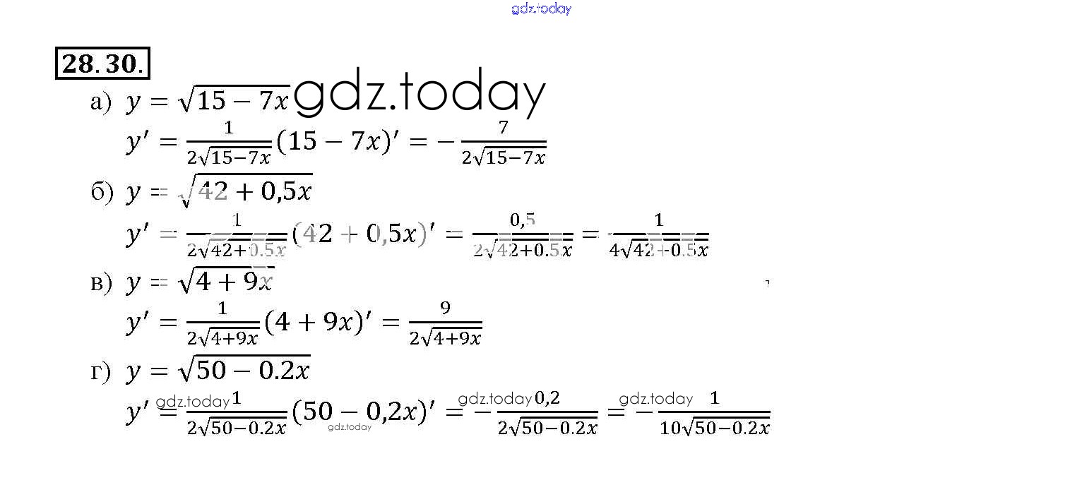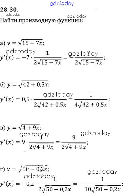 Ответы к §28. Вычисление производных Глава 5 28. 30 Задачнику по Алгебре для 10-11 класса Мордкович, Денищева Базовый уровень Мнемозина 2015