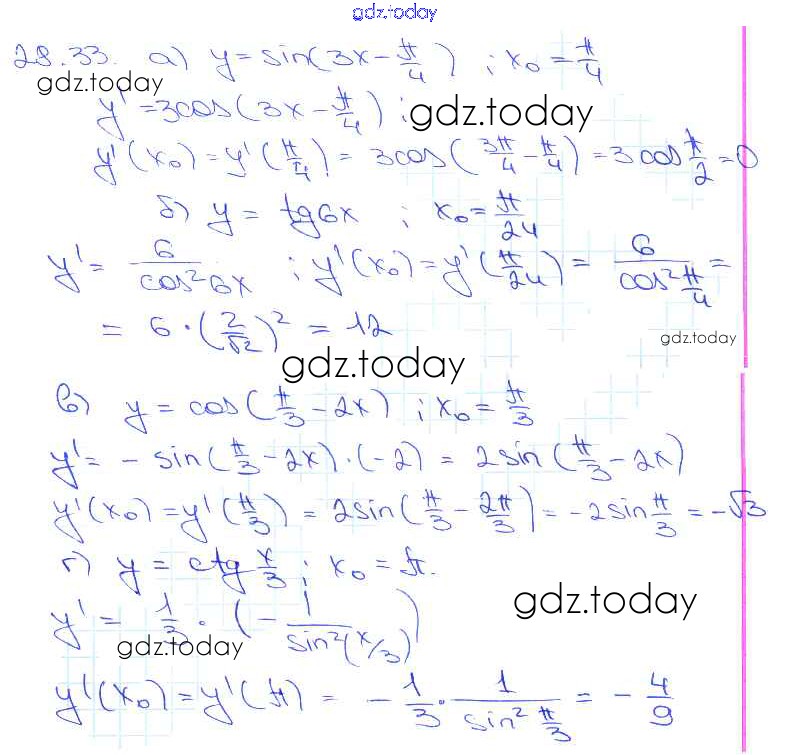 На страницах сайта gdz.today вы найдете учебный и вспомогательный материал, направленный на улучшения знаний школьной программы. ГДЗ - онлайн мир знаний §28. Вычисление производных Глава 5 28. 33 Задачнику по Алгебре для 10-11 класса Мордкович, Денищева Базовый уровень Мнемозина 2015