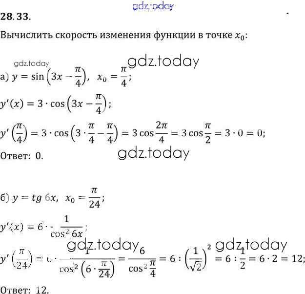 Ответы к §28. Вычисление производных Глава 5 28. 33 Задачнику по Алгебре для 10-11 класса Мордкович, Денищева Базовый уровень Мнемозина 2015