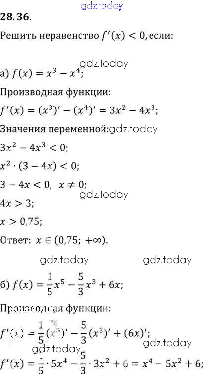Ответы к §28. Вычисление производных Глава 5 28. 36 Задачнику по Алгебре для 10-11 класса Мордкович, Денищева Базовый уровень Мнемозина 2015