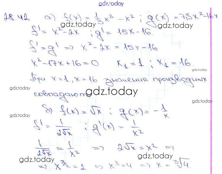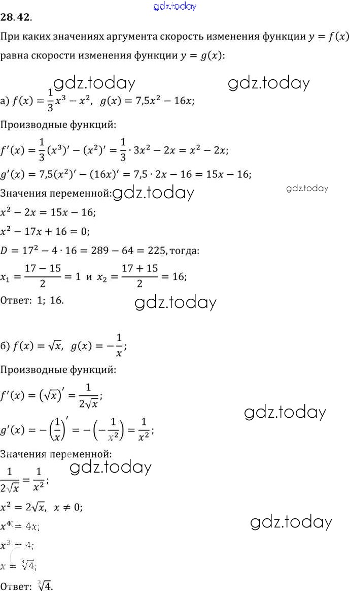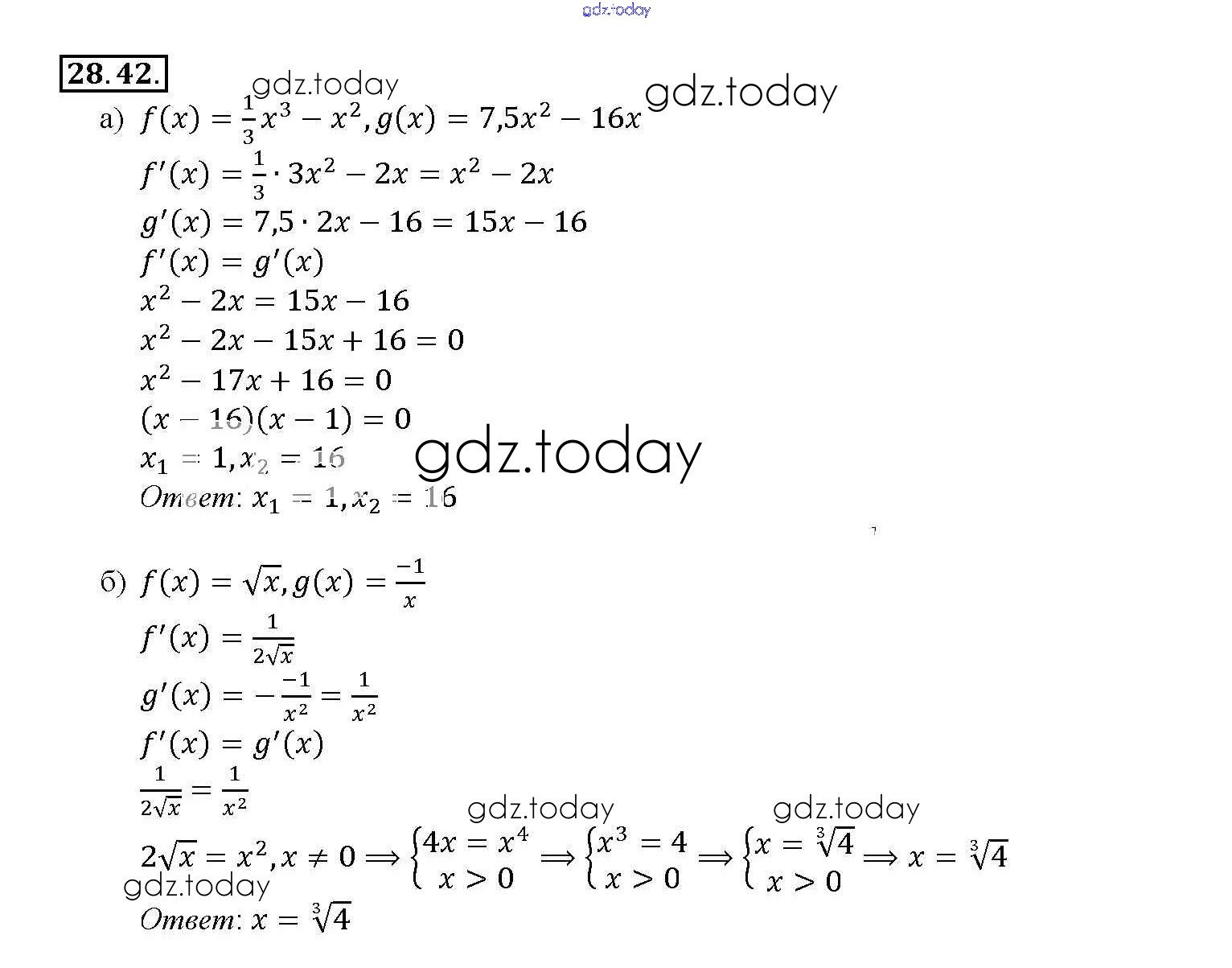 Ответы к §28. Вычисление производных Глава 5 28. 42 Задачнику по Алгебре для 10-11 класса Мордкович, Денищева Базовый уровень Мнемозина 2015