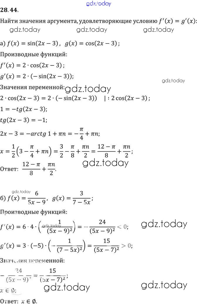 Ответы к §28. Вычисление производных Глава 5 28. 44 Задачнику по Алгебре для 10-11 класса Мордкович, Денищева Базовый уровень Мнемозина 2015