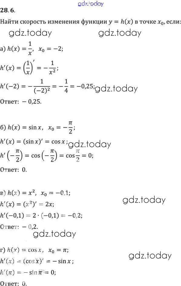 Ответы к §28. Вычисление производных Глава 5 28. 6 Задачнику по Алгебре для 10-11 класса Мордкович, Денищева Базовый уровень Мнемозина 2015