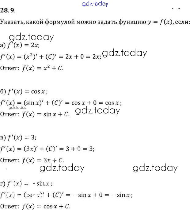 Ответы к §28. Вычисление производных Глава 5 28. 9 Задачнику по Алгебре для 10-11 класса Мордкович, Денищева Базовый уровень Мнемозина 2015