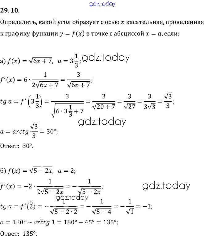 Ответы к §29. Уравнение касательной к графику функции Глава 5 29. 10 Задачнику по Алгебре для 10-11 класса Мордкович, Денищева Базовый уровень Мнемозина 2015