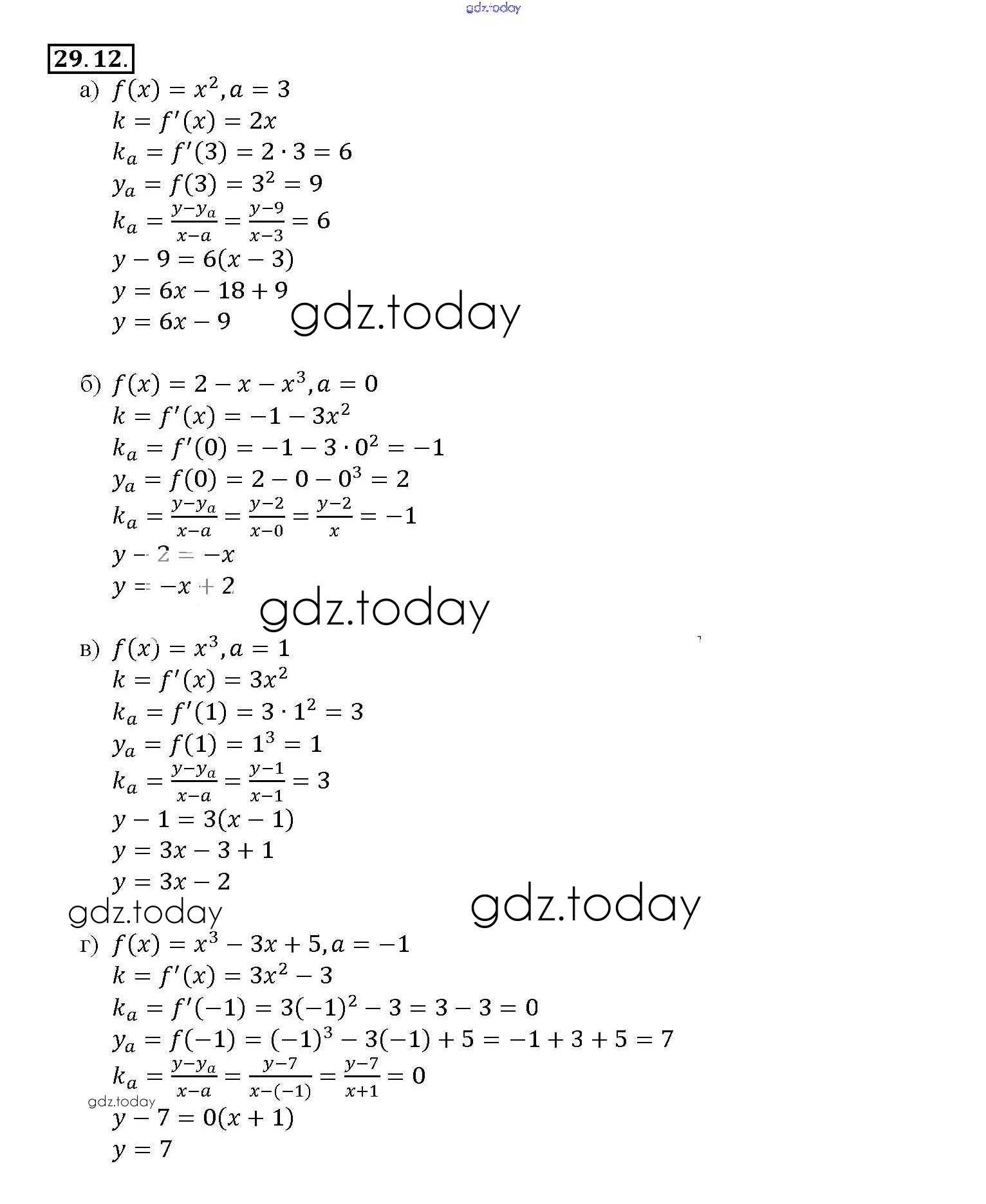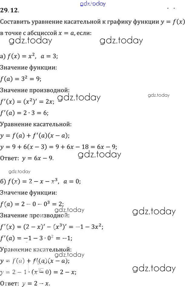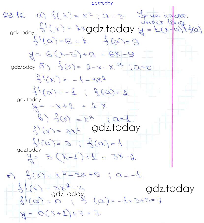 Ответы к §29. Уравнение касательной к графику функции Глава 5 29. 12 Задачнику по Алгебре для 10-11 класса Мордкович, Денищева Базовый уровень Мнемозина 2015
