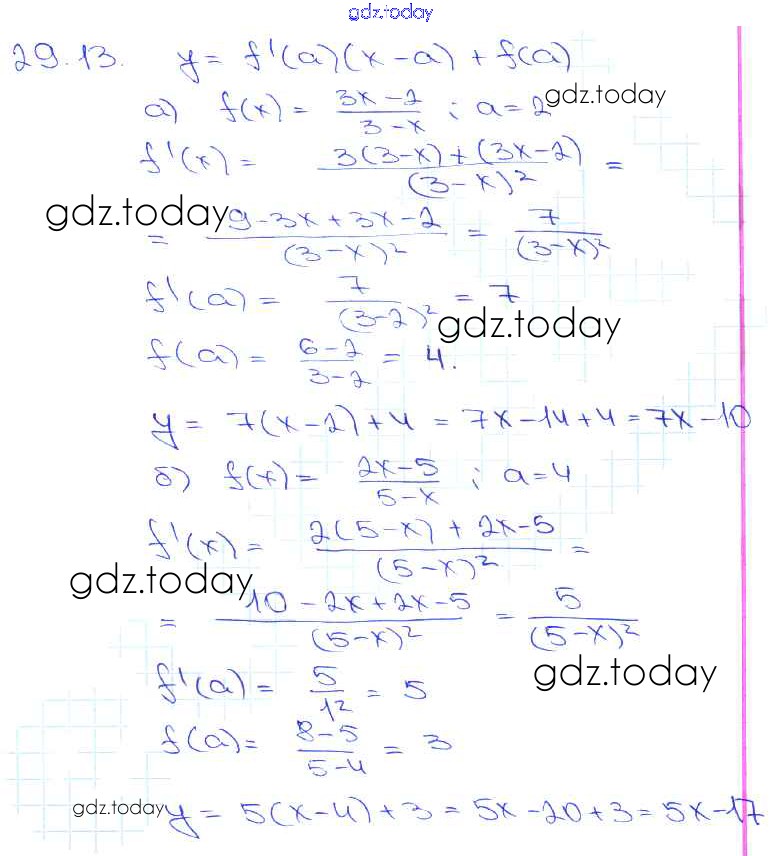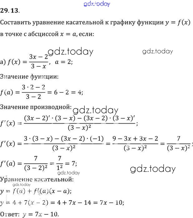 Ответы к §29. Уравнение касательной к графику функции Глава 5 29. 13 Задачнику по Алгебре для 10-11 класса Мордкович, Денищева Базовый уровень Мнемозина 2015