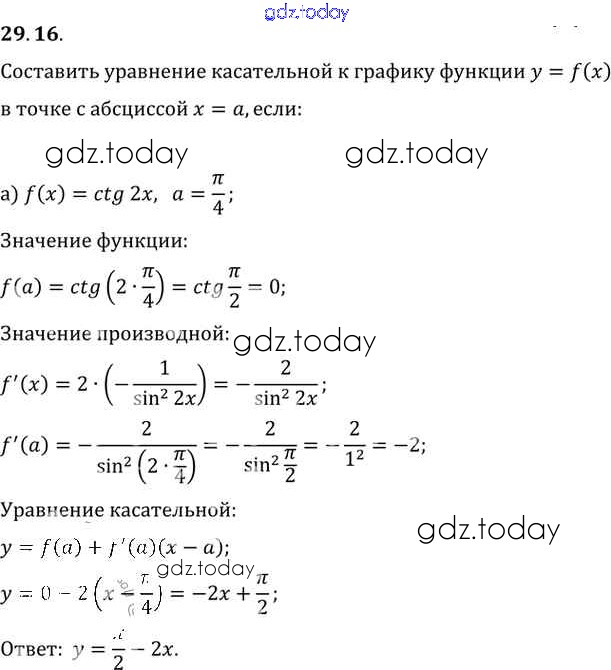 Ответы к §29. Уравнение касательной к графику функции Глава 5 29. 16 Задачнику по Алгебре для 10-11 класса Мордкович, Денищева Базовый уровень Мнемозина 2015