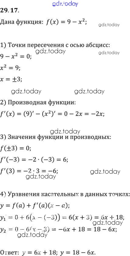 Ответы к §29. Уравнение касательной к графику функции Глава 5 29. 17 Задачнику по Алгебре для 10-11 класса Мордкович, Денищева Базовый уровень Мнемозина 2015
