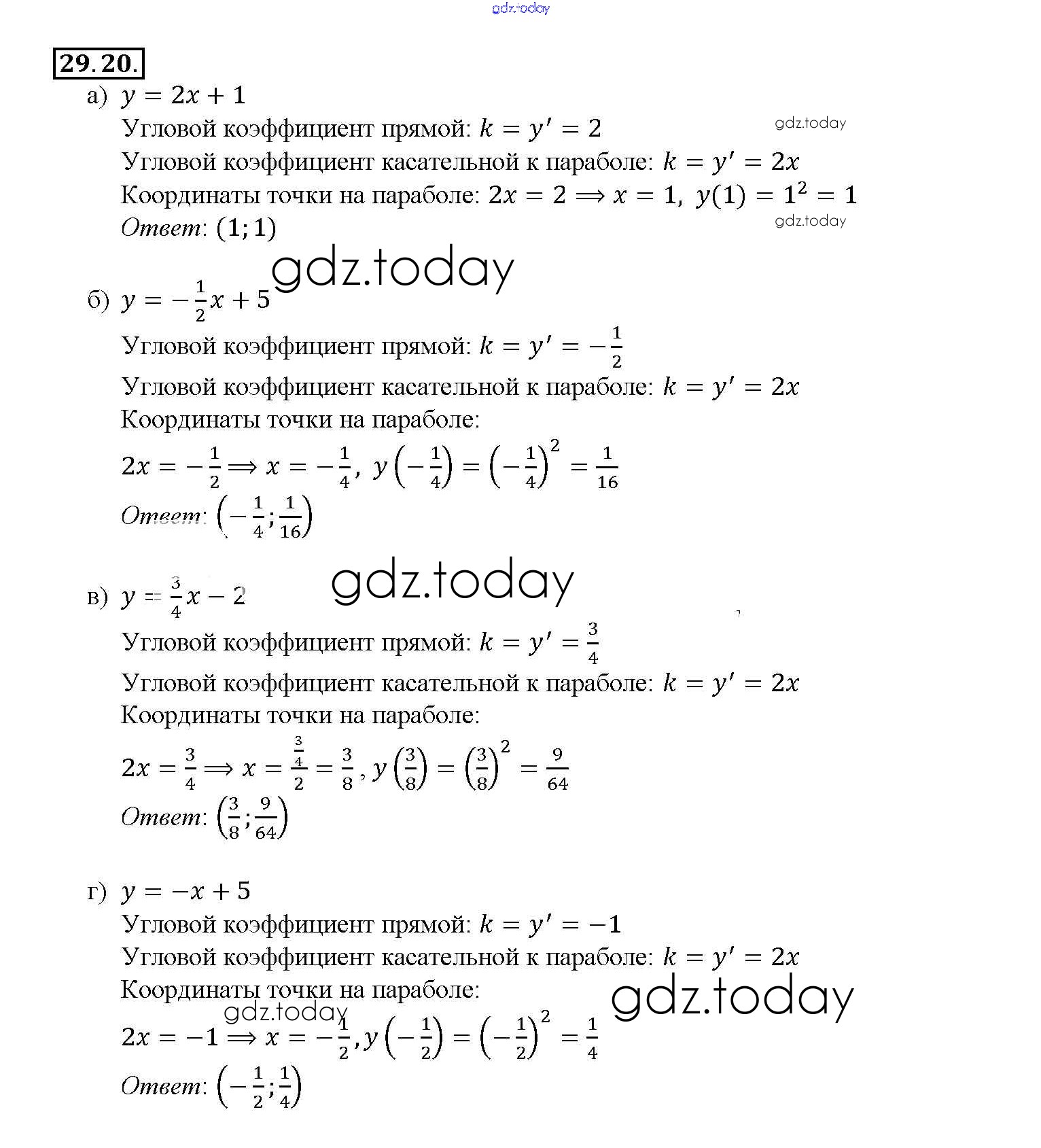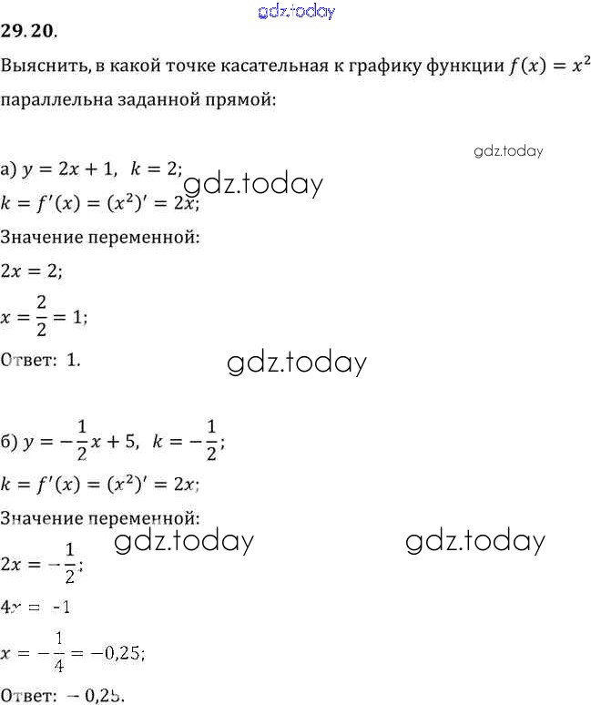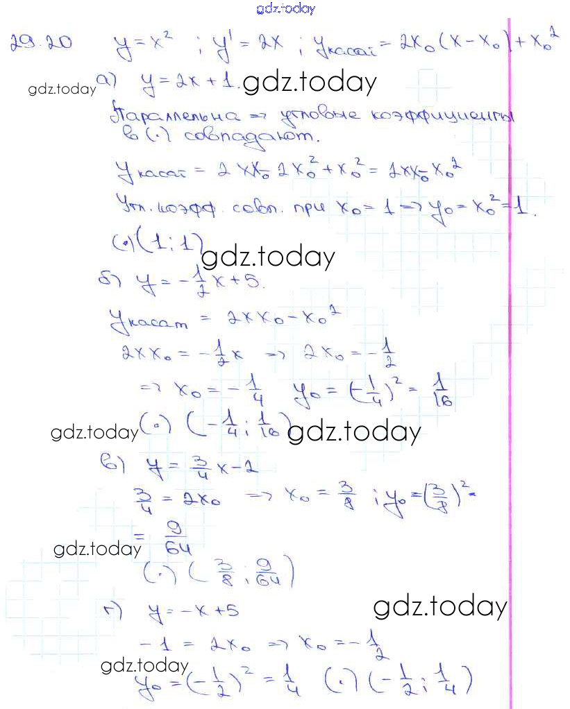 Ответы к §29. Уравнение касательной к графику функции Глава 5 29. 20 Задачнику по Алгебре для 10-11 класса Мордкович, Денищева Базовый уровень Мнемозина 2015
