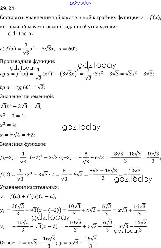 Ответы к §29. Уравнение касательной к графику функции Глава 5 29. 24 Задачнику по Алгебре для 10-11 класса Мордкович, Денищева Базовый уровень Мнемозина 2015