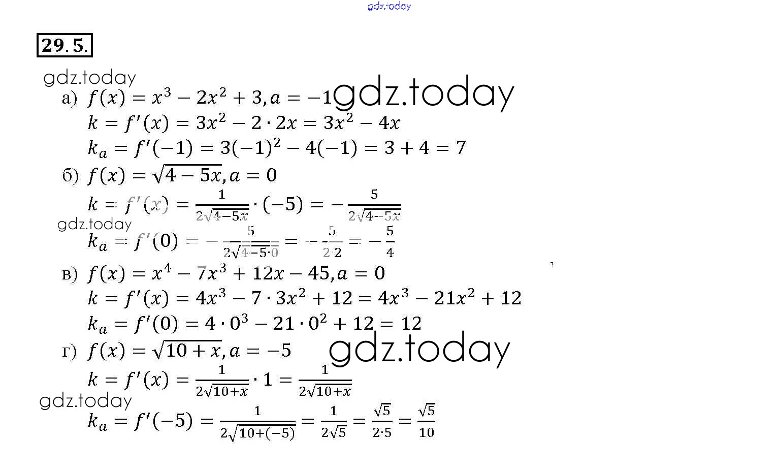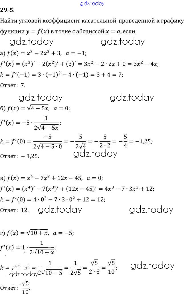 Ответы к §29. Уравнение касательной к графику функции Глава 5 29. 5 Задачнику по Алгебре для 10-11 класса Мордкович, Денищева Базовый уровень Мнемозина 2015