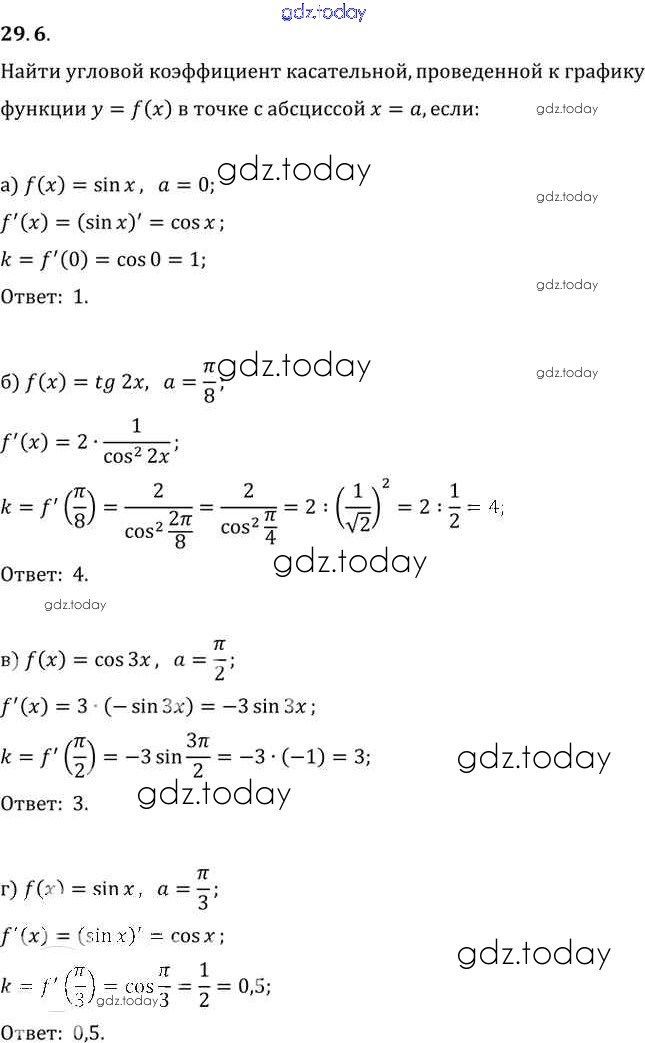 Ответы к §29. Уравнение касательной к графику функции Глава 5 29. 6 Задачнику по Алгебре для 10-11 класса Мордкович, Денищева Базовый уровень Мнемозина 2015