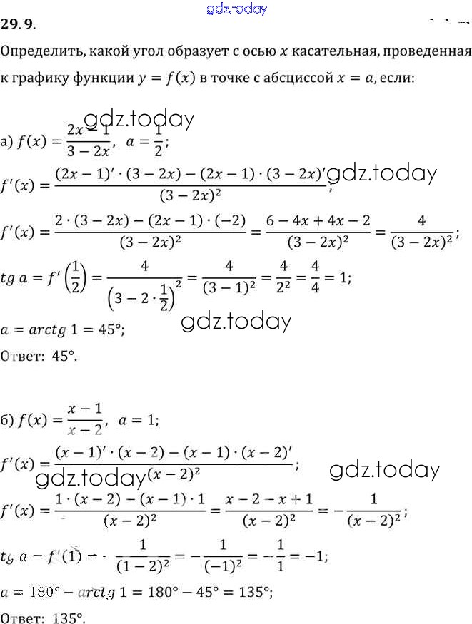 Ответы к §29. Уравнение касательной к графику функции Глава 5 29. 9 Задачнику по Алгебре для 10-11 класса Мордкович, Денищева Базовый уровень Мнемозина 2015