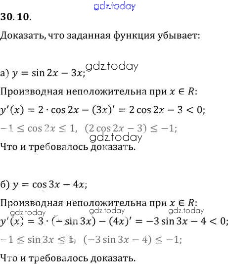 Ответы к §30. Применение производной для исследования функций на монотонность и экстремумы Глава 5 30. 10 Задачнику по Алгебре для 10-11 класса Мордкович, Денищева Базовый уровень Мнемозина 2015