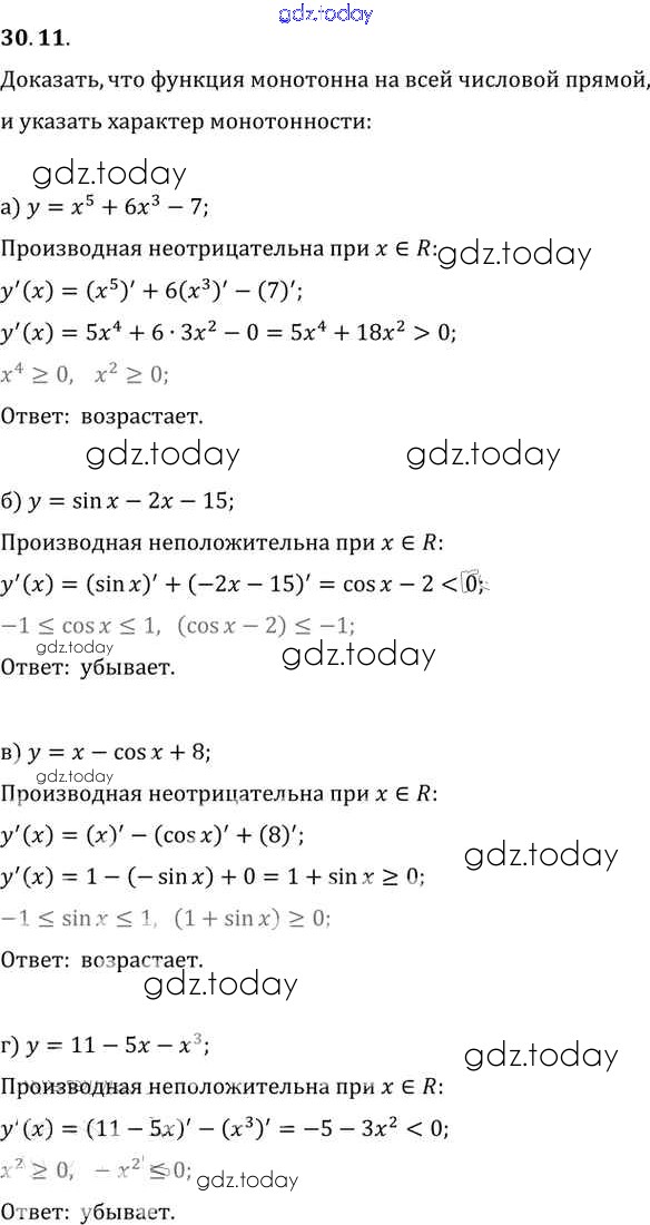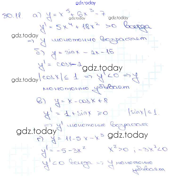 Ответы к §30. Применение производной для исследования функций на монотонность и экстремумы Глава 5 30. 11 Задачнику по Алгебре для 10-11 класса Мордкович, Денищева Базовый уровень Мнемозина 2015