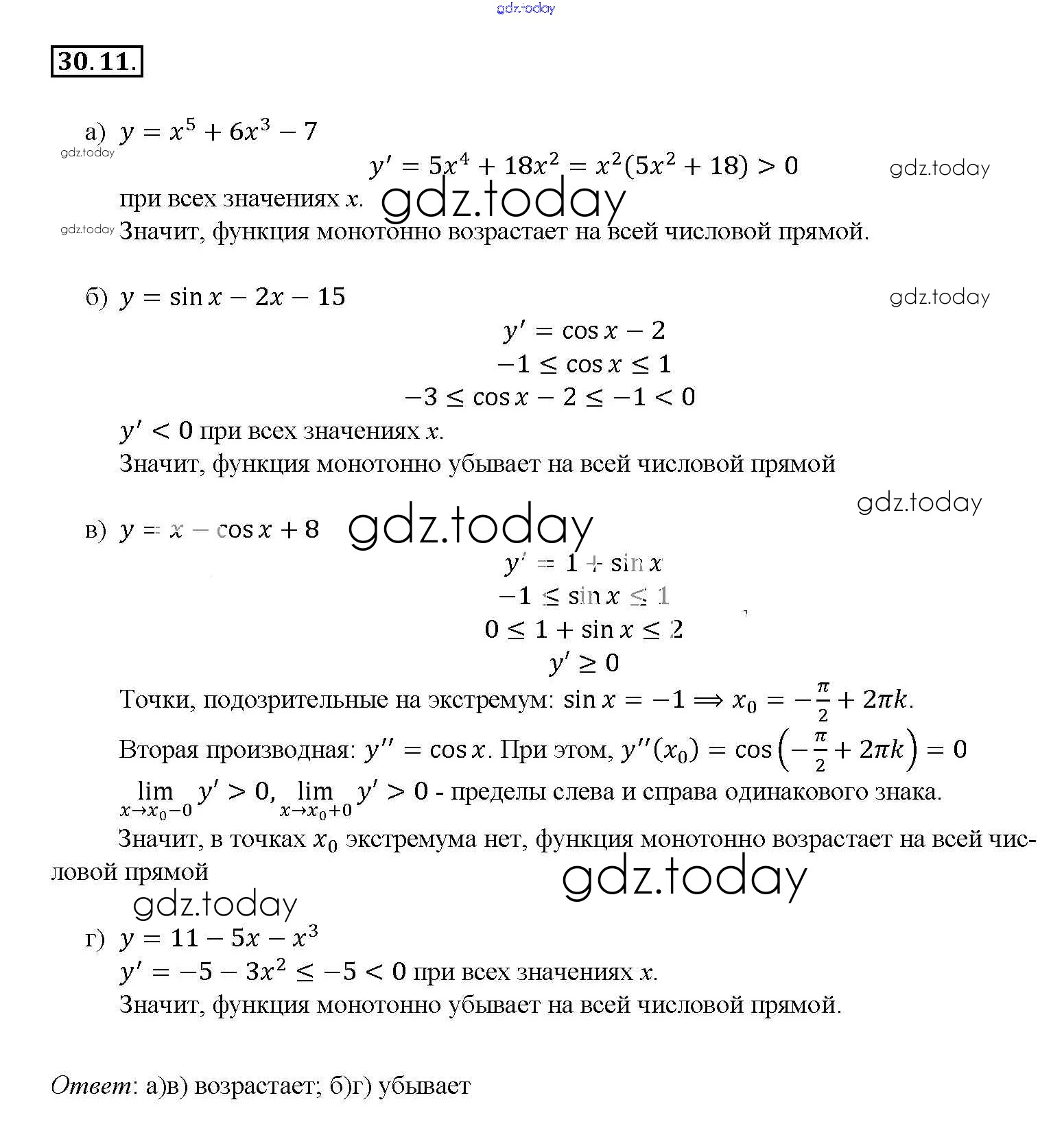 На страницах сайта gdz.today вы найдете учебный и вспомогательный материал, направленный на улучшения знаний школьной программы. ГДЗ - онлайн мир знаний §30. Применение производной для исследования функций на монотонность и экстремумы Глава 5 30. 11 Задачнику по Алгебре для 10-11 класса Мордкович, Денищева Базовый уровень Мнемозина 2015