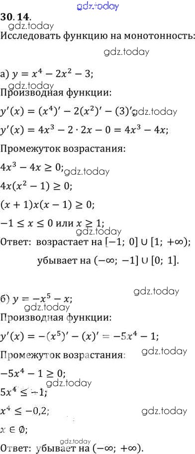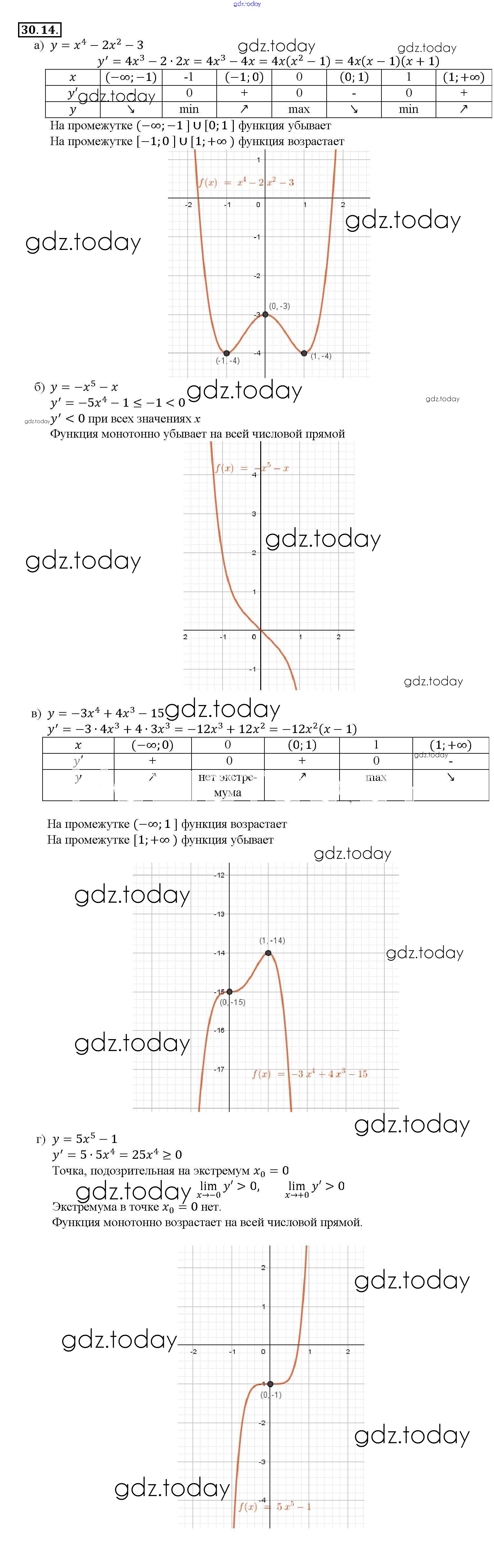 Ответы к §30. Применение производной для исследования функций на монотонность и экстремумы Глава 5 30. 14 Задачнику по Алгебре для 10-11 класса Мордкович, Денищева Базовый уровень Мнемозина 2015