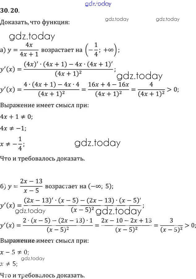 Ответы к §30. Применение производной для исследования функций на монотонность и экстремумы Глава 5 30. 20 Задачнику по Алгебре для 10-11 класса Мордкович, Денищева Базовый уровень Мнемозина 2015