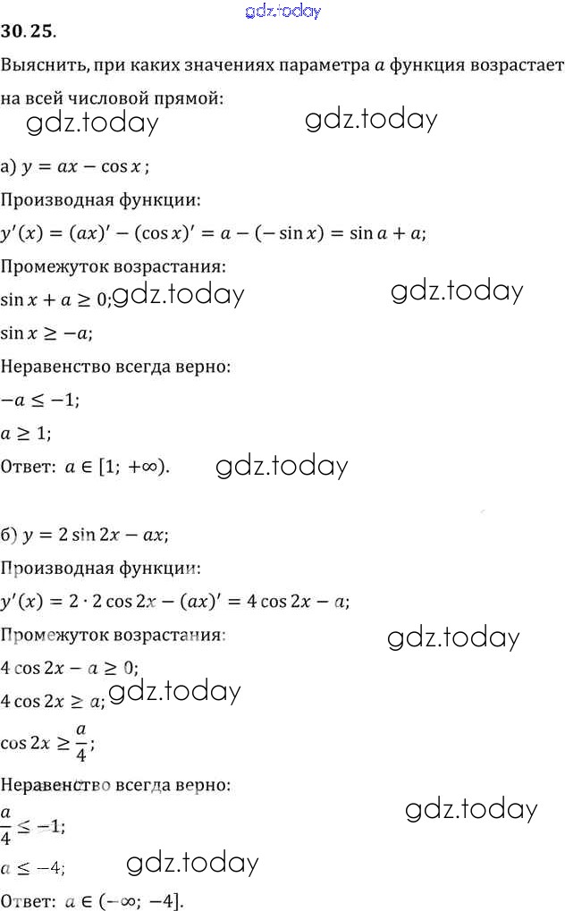 Ответы к §30. Применение производной для исследования функций на монотонность и экстремумы Глава 5 30. 25 Задачнику по Алгебре для 10-11 класса Мордкович, Денищева Базовый уровень Мнемозина 2015
